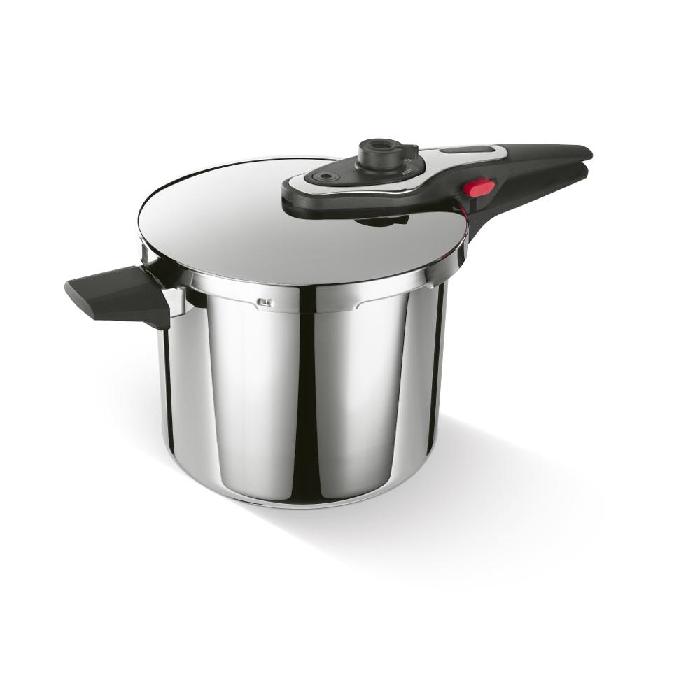 Четыре фиксирующих замка, индикатор давления и двойной предохранительный клапан обеспечивают максимальную безопасность во время приготовления пищи.